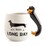 Cute mug featuring a 3D handle shaped like a black & tan dachshund! Dachshund silhouette and punny quote "it's been a long day" on both sides of the mug Hand wash only- not dishwasher safe