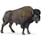 This bison looks magnificent with its mighty head and distinctive hump on its shoulders. The thick brown coat is lighter colored and denser on the back. Its thick head and broad chest are colored black. The bison does have two short horns on its head, just in case, but it actually looks very friendly.