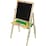 - DUAL-SIDED: Dual sided multifaceted easel with dry erase and chalkboard surfaces.