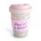 Eco-friendly travel cup made from bamboo: Biodegradable, BPA Free, Dishwasher Safe, Antibacterial Features a pastel pattern of magical unicorns and rainbows on a sky blue background Matching pastel pink anti-spill lid and protective silicone band with 'One of a Kind' quote Holds approximately 470 ml