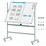 Discover the ultimate tool for creative and efficient presentations-the 360° rotating double-sided whiteboard! Effortlessly switch between sides and lock it at an upright position for the best perspective. This spacious 120 x 90 cm board is not only useful and stain-resistant but also comes fully equipped with a treasure trove of accessories: 6 markers, 12 kits, a flipchart, and more! Whether heightening it to 188 cm for adults or lowering to 160 cm for little ones, this adaptable piece with flexible adjustment moves seamlessly on silent, floor-friendly lockable casters. Ideal for classrooms bustling with ideas, boardroom strategies, or a spontaneous drawing session at home. Its well-crafted details and robust metal stand ensure longevity. Ready to elevate your brainstorming sessions? Make this versatile workspace essential all yours!