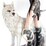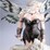 Figurine of a white-haired fairy in a black dress holding a dreamcatcher Watchful white wolf companion by her side Highly detailed, with real woven string dreamcatcher