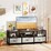 Revamp your living room with our modern, versatile TV stand! Say goodbye to cluttered cords with convenient built-in charging ports for all your essential devices! The expansive tabletop can hold up to 65” TVs, while the open shelf and 3 fabric drawers offer ample storage space for your tech gadgets. The TV media table features an elegant wood grain finish that enhances any interior decor. Constructed with a durable metal frame, this TV cabinet is designed to withstand the test of time, keeping your electronics safe and stylish. Elevate your entertainment experience by bringing home this sleek entertainment center that combines style and functionality effortlessly!