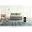 A distressed blue tribal line pattern on a faded ivory-based bordered background. A uniquely modern take on a vintage style rug design to accent any space and decor.