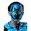 Injection moulded half mask with painted features in blue and black