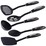 JOYBUY 1set 5pcs Nylon Kitchenware Non-stick Cooking Tool Stainless Steel Handle Spatula Ladle Shovel Spoon Soup Kitchen Set (black)