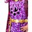 Purple-toned playsuit with wolf print on chest and attached sleeeves in pink and black stripes