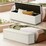 Oikiture Storage Ottoman Blanket Box Linen/Faux Leather Toy Foot Stool L/XL White Sherpa 124 cm