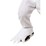 White all-in-one 'wolf' jumpsuit with sewn on buttons down the front and hook n loop tabs at rear. The jumpsuit has attached padded boot covers with elastic straps to go under shoes and 3D jersey tail at rear