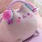 - Soft, extra-squishy Squisheen in a lounging pose with pink and blue headphones