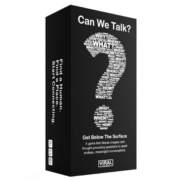 Get Below the surface A game that blends imagery and thought-provoking questions to spark endless, meaningful conversation. Small talk is out; and getting vulnerable is in. Whether you are playing with your best friends, significant other, family member or a stranger. CAN WE TALK? gets you open up about the things that really matter. Ages: 18 + | Players: 2 - 6 | Playtime: 30 - 90 Mins