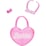 - Barbie is dressed in her removable fashions, like her pink, polka-dots heart top with matching denim skirt.
