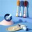- Colors: pink, blue, yellow