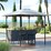 The 3-piece bar table set with gazebo allows you to enjoy outdoor dining or drinking without concern about sunburn. The compact design is meticulously crafted to complement any backyard, garden, or poolside area. The gazebo shelter boasts a powder-coated metal frame with a PU coated polyester canopy that shields against harsh sunlight and fading. Additionally, the canopy top is vented for added cool and stability. Thoughtfully, the 3-piece grill gazebo comes with ground stakes and expansions screws to ensure a stable standing on various ground surfaces. Additionally, the bar table showcases a heat-resistant tempered glass top ideal for serving drinks, along with handy storage shelves and glass holders for easy access to essential items. The ergonomically designed bar stools come with S-shaped mesh fabric seats and footrests, offering optimal comfort for extended conversations and unwinding sessions.