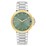 This women's watch features a precise quartz movement housed in a 34 mm stainless steel case with an 8.2 mm thickness. Its green dial is protected by a durable mineral crystal, complemented by a 9.05 mm stainless steel band. Designed for everyday wear, it offers water resistance up to 5 ATM and secures comfortably with a push-button deployment clasp.