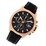 This men's watch features a precise quartz multifunction movement housed in a 43 mm case with a sleek 11.3 mm thickness. Its black dial is complemented by a durable mineral crystal and a black leather strap with a 21 mm width, secured by a tongue buckle. The ionic plated rose gold steel case adds a touch of elegance, while 5 ATM water resistance ensures reliable everyday wear. Perfect for those seeking style and functionality in one timepiece.