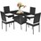 P&P 5Pcs Patio Rattan Dining Set Cushioned Chair Table W/Glass Top Garden Furniture