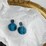 P&P Elegant Blue Oil Drop Earrings Retro Fashion Silver Needle Jewellery For Women