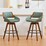 HOMFURN Counter Height Bar Stools Set of 2, Mid Century Modern Retro Bar Chairs, Swivel Barstools with Walnut Craft, Faux Leather Upholstered Counter Stool, Green