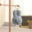- Textured boucle-style fabric in soft blue with white accents for a premium, tactile feel