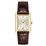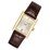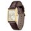This men's watch features a reliable quartz movement with a simple calendar function. Its 28 mm diameter and 7.8 mm slim case highlight a silver-white dial protected by a durable mineral crystal. The brown leather strap, 21 mm wide, pairs elegantly with the ionic plated thin gold steel case. Water-resistant up to 3 ATM and secured with a tongue buckle, this timepiece combines style and practical wearability for everyday use.