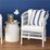 It has a chippy white metal base with a removable whitewashed mango wood top.