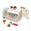 Scoop up some cool treats with this all-inclusive, 20-piece pretend play ice cream counter! The sturdy wooden tabletop counter holds eight wooden scoops of different-flavored ice cream, six assorted toppings, two cones, a plastic cup, an ice cream scooper and a wooden spoon. The scooper fits into a hole on top of the scoops to lift, stack, and release. Take orders on the reusable menu card and serve up delicious fun!