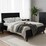 Elevate your bedroom with this queen size bed in brushed black colour, a perfect blend of traditional craftsmanship and modern design. Crafted from solid Acacia timber, this bed showcases a rich brushed black finish that highlights the natural grain while adding a bold contemporary touch. The angled headboard and tapered legs bring a sleek, architectural feel, while the solid timber slats with a central support leg ensure reliable durability and strength. Designed for both style and comfort, this queen bed anchors your room with timeless elegance while promising long-lasting use.