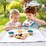 Includes one storage box, one teapot, four cups, four saucers, one plate, four cookies and one picnic cloth.