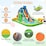 Measuring 378 x 469 x 250 cm (L x W x H), this giant water park features a 9-in-1 design that includes a ring toss game, basketball hoop, volleyball area, dual water cannons, climbing wall, water slide with raised guardrails, ball shooting, tunnel, and an entertaining ball pit. This variety offers endless opportunities for exercise and exploration, keeping little ones engaged and active.