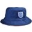 Fitted reversible bucket hat in navy cotton with a red, blue and white pattern on reverse