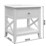 Add a touch of stylish-inspired charm to your bedroom with this 1 drawer and 1 shelf bedside table in white colour. Crafted from a sturdy blend of Acacia and MDF timber, this piece offers both durability and style. The white painted finish, X-shaped side design, and round silver metal handle create a timeless look that suits a wide range of interiors. Designed with convenience in mind, the drawer runs on full-extension metal runners, lined with black felt for a refined finish, while the open shelf provides practical storage. Arriving fully assembled with tempered legs for extra stability; this bedside is as functional as it is stylish.