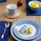 - Blue and white design inspired by natural seashore textures