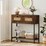 This stylish and functional Boho console table helps keep your living space organized and visually inviting. Featuring a spacious tabletop, two large rattan-patterned drawers, and an open shelf, this long and narrow table provides ample storage for everyday essentials. Its sturdy metal frame with adjustable foot pads ensures lasting stability, while the included anti-tip device adds extra safety. Easy-to-clean surfaces and an 11 cm clearance make maintenance effortless. Combining practicality with charming Boho style, this console table brings both order and warmth to any room.