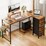 Tioiear L Shaped Computer Desk with Monitor Stand, Reversible Corner Gaming Desk 4 Fabric Drawers 120x80x86cm Rustic Brown