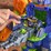 - Design: Blue robot with orange arms, green and grey accessories, detailed mechanical features