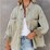 Nevenka Ripped Fringe Denim Jacket for Women with Pockets Oversized Coat-Light Green XL