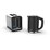 Both the kettle and toaster feature a digital LCD display and a modern matte black, stainless steel finish.
