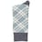 - Design Pattern: Plaid with intersecting lines in grey, white, and blue