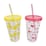16PK Braz Kids Plastic Drinking Tumbler W/ Swirl Straw & Lid Assorted