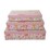 Each box nests neatly within the other for easy storage when not in use, offering a space-saving and stylish way to keep your items organised. The vibrant floral pattern and soft pink lids add a decorative touch, making these boxes suitable for both practical storage and attractive gift wrapping.