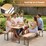 Made from solid fir wood, the picnic table set blends a natural appearance with lasting durability. The robust metal frame, reinforced with an X-shaped structure, ensures stable support. Featuring a spacious table and two 177 cm benches, the beer table bench set comfortably accommodates up to 6 people. Moreover, security locks allow you to secure the frame quickly for hassle-free setup, and it folds down swiftly for effortless storage and transport. Ideal for patios, gardens, backyards, or porches, this portable outdoor dining set with more details lets you host picnics, BBQs, or casual meals with ease.