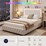 Advwin LED Bed Frame with 4 Storage Drawers and Charging Station Double Chesterfield Bed Velvet Upholstered Platform Beige