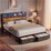 Advwin LED Bed Frame with Charging Station Metal Platform Bed Frames with 2 Storage Drawers Double Size Retro Brown