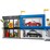- Features a tram, LEGO(R) Store, LEGO delivery truck, helicopter, car dealership, 3 cars, tow truck, bike, pizza delivery scooter, tram stop, coffee shop, hotdog stand and a newsstand