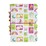 This colourful notebook features a playful cover adorned with illustrations of butterflies, parrots, lemons, flowers, and palm trees in bright colours such as pink, yellow, green, and white. The durable coated surface ensures longevity, while the pink elastic band keeps the journal securely closed, protecting your notes and maintaining a neat appearance on the go. Decorative gold beads along the side add a touch of elegance and style to this vibrant stationery piece.