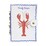 - Design: White cover with lobster illustration, blue wavy border, gold accents