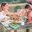 - Set includes a lunch box, 10 fruit forks, 4 silicone cups, 1 sauce container, and 1 spoon.
