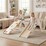 This little ones climbing triangle set offers endless play options with a versatile design including a climbing triangle, triangle slide doubling as a tunnel, and a balance bridge convertible into a ramp. Crafted from sturdy solid beech wood with smooth edges and secure handrails, it ensures safe and enduring play. The folding climbing triangle makes it easy to store and allows you to arrange freely for endless fun. This playset is perfect for bedrooms, playrooms, or living areas. Featuring swivel cartoon blocks and a charming panda theme, it inspires creativity and boosts imagination. Designed with well-made details, this Montessori climbing set can boost imagination, encourage physical and sensory development while providing limitless fun.