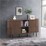 Transform your living space with this elegant, modern storage and shelving unit that combines style and functionality. Featuring smooth, curved ends and four sleek sliding doors with a slatted design, this unit offers easy access to ample storage while keeping your space organised.